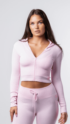 Seamless Zip Up Hooded Ribbed Jacket