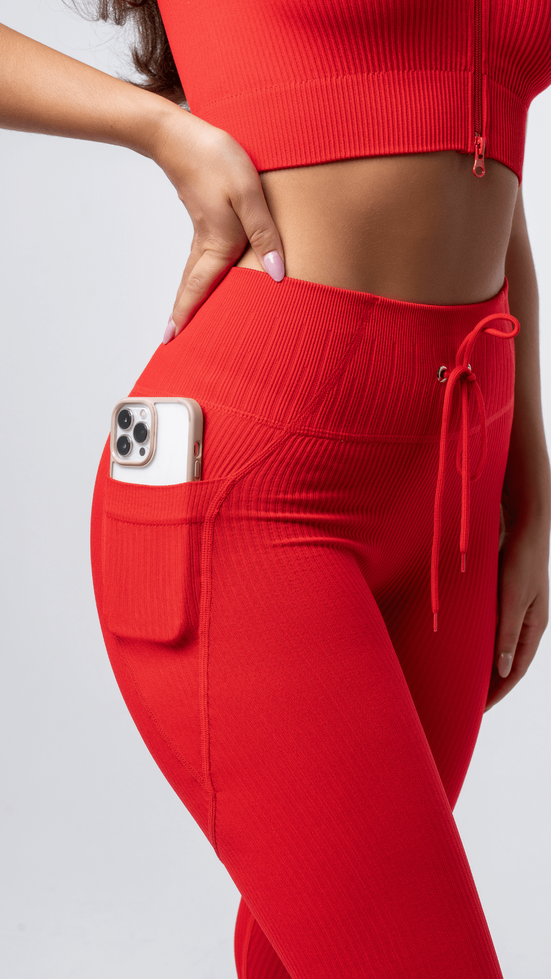 Ribbed Tie Waisted Biker Shorts - High Waisted