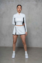 Get in, girl... We're going to the gym! This active skirt features wide elastic waist, mini length, and crossover detail.