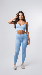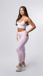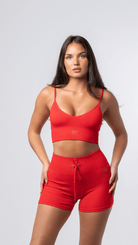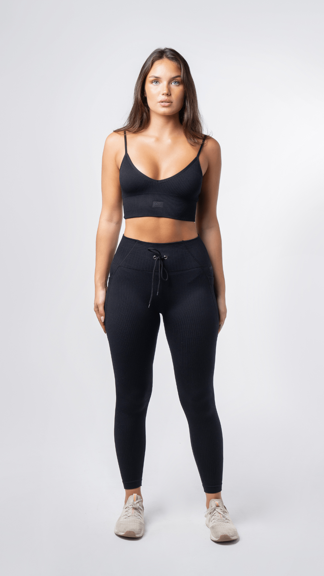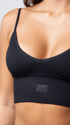 This tank features seamless construction, all-over ribbing, adjustable straps, and cropped hem.