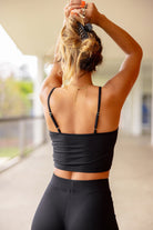 This tank has a stunning silhouette that's snug in all the right places. This tank features bustier fit, adjustable straps, light ribbed fabric and SMR embroidery.